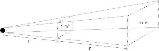 Une source sonore telle une sphère pulsante émet une puissance acoustique (exprimée en watts) dans toutes les directions. Plus on s’éloigne du centre de la sphère, plus la puissance par unité de surface (l’intensité) va diminuer.