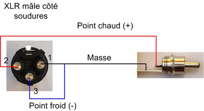 Du côté de la fiche XLR, rien ne change par rapport à l’adaptateur ci-dessus. Les soudures sont identiques.