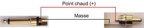 Ici, il faudra relier le point froid (-) à la masse, et ce pour éviter une perte de niveau. Il s’agit d’une désymétrisation du signal.