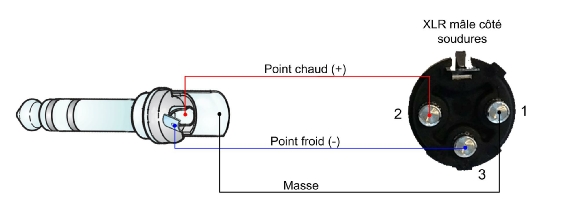 Il ne nous reste plus qu’à souder notre câble sur la fiche XLR d’un côté et sur la fiche Jack de l’autre côté.