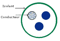Un câble est composé de un ou plusieurs conducteurs. Chacun de ces conducteurs est entouré par un isolant. Ces mêmes conducteurs sont également composés de un ou plusieurs brins métalliques.