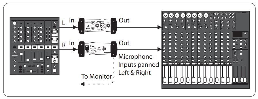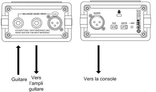Son rôle sera de convertir la sortie de notre guitare (ou d’un autre instrument) en une sortie symétrique à basse impédance et d’effectuer une adaptation de niveau de sortie afin de permettre le raccordement à une entrée micro de la console.