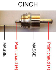 Ces fiches sont très utilisées dans le monde de la hi fi et du home cinéma. Elles permettent le transport d’un signal mono asymétrique. Pour un signal stéréo, on utilise alors deux connecteurs. Par convention, la couleur rouge des cinch correspond au canal droit, la couleur noire ou blanche au canal gauche.