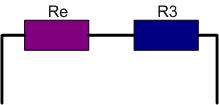 Ici, les résistances R1 et R2 sont en parallèles. Et la résistance équivalente (Re) est en série avec la résistance R3.