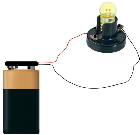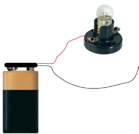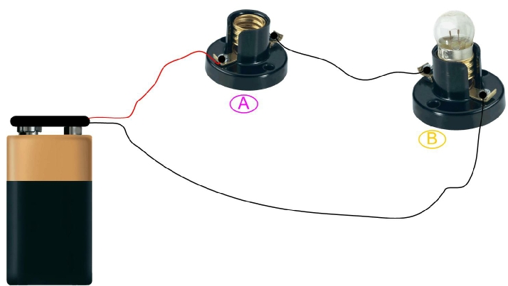 Deuxième situation : Le soquet de la lampe A est vide. Le courant ne peut donc pas circuler, le circuit est ouvert. La lampe B ne pourra pas s’allumer.