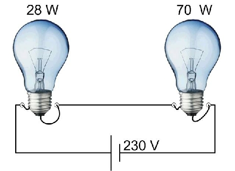 Et que se passe-t-il si on place deux ampoules différentes (une de 28 watts, une de 70 watts) en série ?