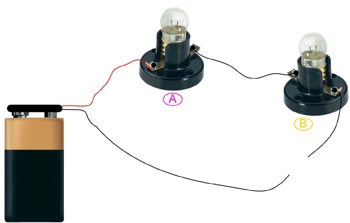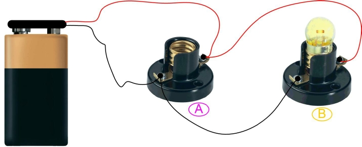 Deuxième situation : Le soquet A est vide. Ce qui n’empêche pas la lampe B d’être allumée.