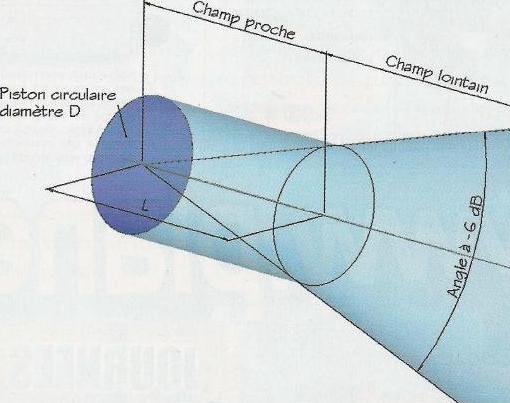 Après une courte distance, cette onde plane va se transformer en onde sphérique, selon un angle de 1,22 λ/ D = (sin θ/2). Le centre de celle- ci sera le centre de notre piston.
