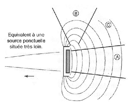 On parlera de source ponctuelle pour une source idéale, correspondant au modèle de notre sphère. Dans la pratique, une source sera ponctuelle lorsque ses dimensions sont petites devant la longueur d’onde.
