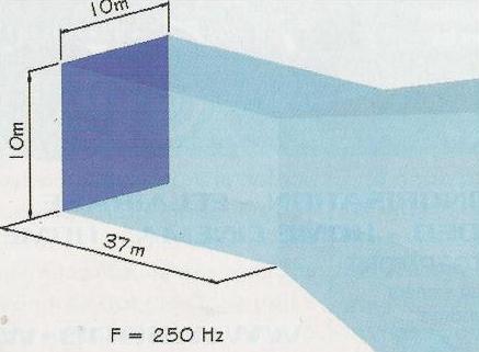 Sachant aussi que le couplage des 46 cm se fait proprement jusqu’à 250 Hz dans ce système, on obtient une onde plane de 10 mètres de côté jusqu’à L= 10²x250/680 soit environ 37 mètres.