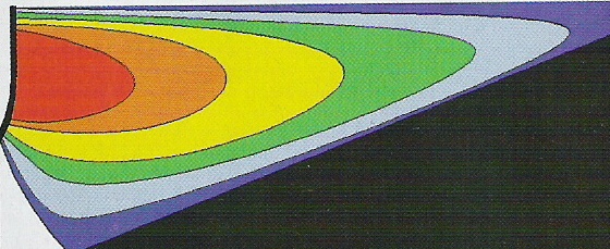 Ceci nous amène à remarquer que les dispersions verticale et horizontale ne sont plus les mêmes, d’où l’apparition d’une zone intermédiaire dans laquelle l’onde ne propage pas de manière plane mais cylindrique.