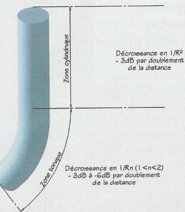 De cette manière, l’onde sonore subit une décroissance intermédiaire entre l’onde cylindrique et l’onde sphérique.