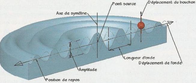 Si on place un bouchon sur la surface de l’eau, celui- ci ne s’éloignera pas. Il se contentera d’osciller de bas en haut.
