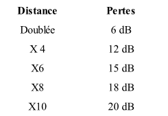 Voici un tableau illustrant les pertes en fonction de l’éloignement à la source, sachant que le niveau sonore servant de base est en général celui prit à 1 mètre de la source sonore.