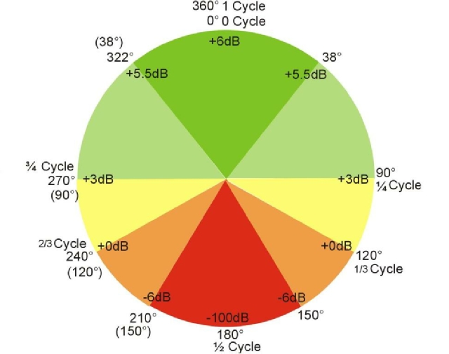 Et sous le tableau, le cercle nous permettant de connaître la valeur en dB par rapport au déphasage.