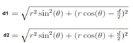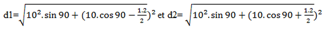 Et pour connaître les distances d1 et d2, nous utiliserons les formules suivantes :