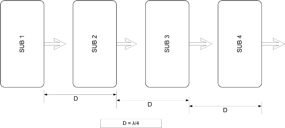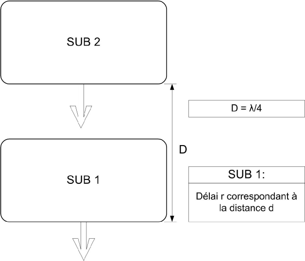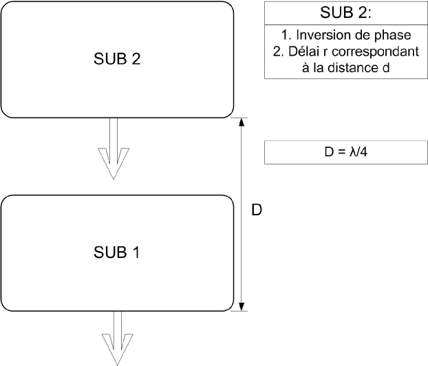 Chaque sub est espacé d’une distance D, correspondant au quart de la longueur d’onde de la fréquence choisie.
