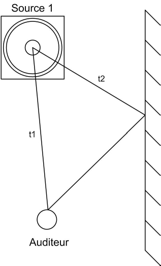 Dans la deuxième, la différence de temps est cette fois provoquée par le fait que le son rencontre des obstacles (murs, sol,…).