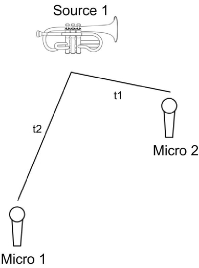 Dans tous les cas, ce décalage spatial (et donc temporel puisque le son se propage à une vitesse de 340m/s) va introduire un déphasage.