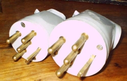 En plus des fiches P17, il arrive que l’on rencontre d’anciennes fiches. Style de fiche qu’on utilise parfois pour brancher nos cuisinières ! Ces fiches ne permettent qu’une intensité de 20 ou 32 ampères maximum.