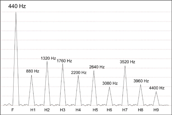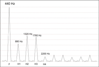 Lorsqu’on utilise un analyseur de spectre et qu’on analyse une note produite par un instrument, on se rend compte que le son résultant n’est pas composé d’un son pur mais d’une multitude de fréquences.
