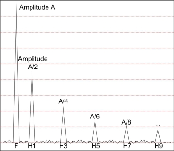 On trouve également la présence de fréquences harmoniques, multiples de la fréquence fondamentale.