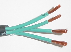 Le câble de gauche est un câble à 4 conducteurs dont ceux- ci sont repérés par des numéros et non pas par couleur, ce qui n' est pas le cas pour celui de droite.