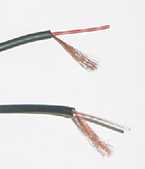 Les câbles destinés à alimenter des enceintes acoustiques à partir d' un amplificateur sont totalement différents. Le signal étant d' une intensité largement plus grande que notre signal de niveau micro ou ligne, nous n' aurons plus besoin de blindage.